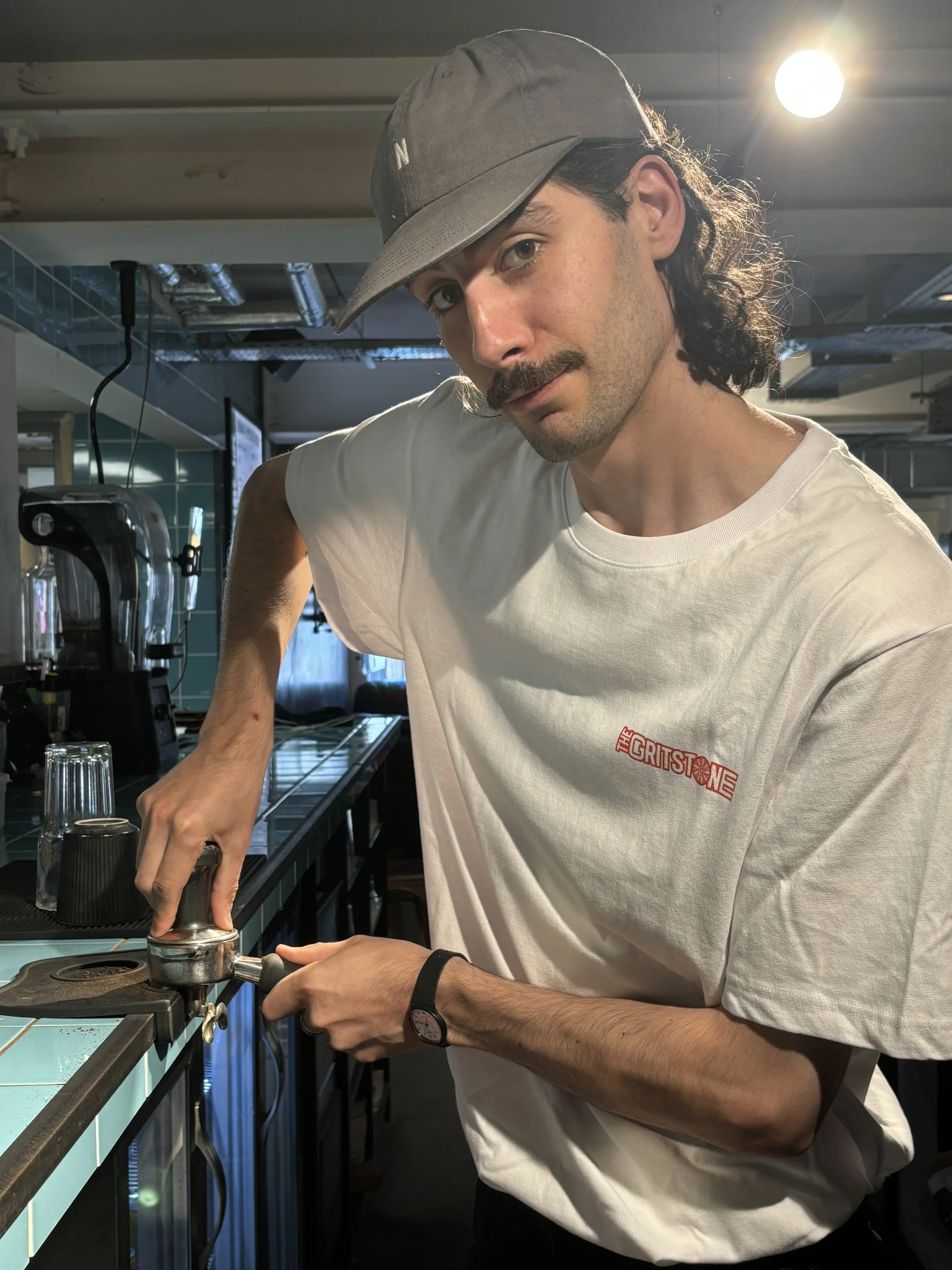 The goal is to design a T-shirt that promotes Gritstone, a unique pizzeria located inside a climbing gym. The design should reflect the adventurous spirit of climbing while highlighting the delicious, artisanal pizzas that Gritstone offers. The T-shirt will serve both as a promotional item and as a wearable piece of branding for staff and customers.